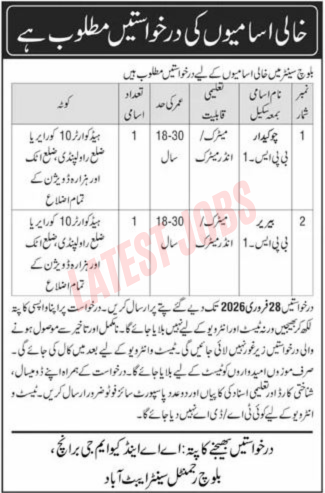 Support staff opportunities that assist in maintaining day-to-day operations and administrative tasks inside the organization are available at the Baloch Regimental Center Jobs 2026. These positions contribute to a well-organized and productive workplace by guaranteeing efficient operations, appropriate sanitation, and general facility management throughout the cantonment region.